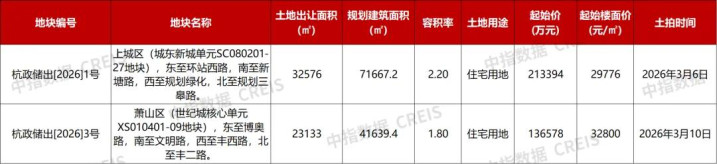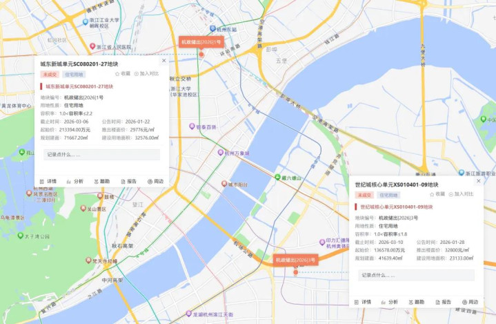 截至目前,3月份杭州将有2宗优质宅地将于上旬出让,分别位于城东新城单元和世纪城核心单元,总土地出让面积2.31万㎡,总规划建筑面积4.16万㎡,总起始价近35亿元。两宗地块周边交通便利、配套成熟,均属于优质“宝地”,点击查看地块详情:世纪城核心单元地块 城东新城单元地块